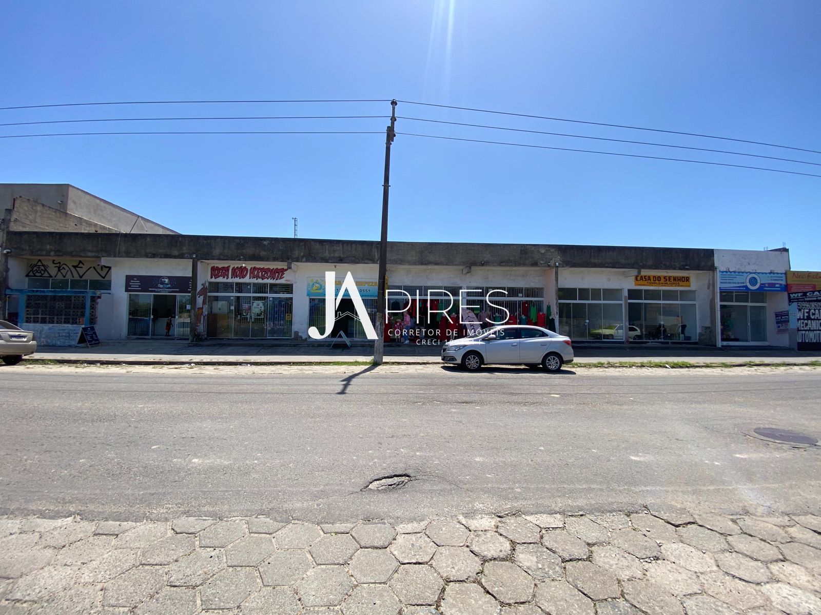 Nos fundos, voltadas para a Avenida, encontram-se 9 lojas comerciais, cada uma com aproximadamente 60m² e equipadas com 2 banheiros, oferecendo estrutura completa para diversos tipos de comércio.